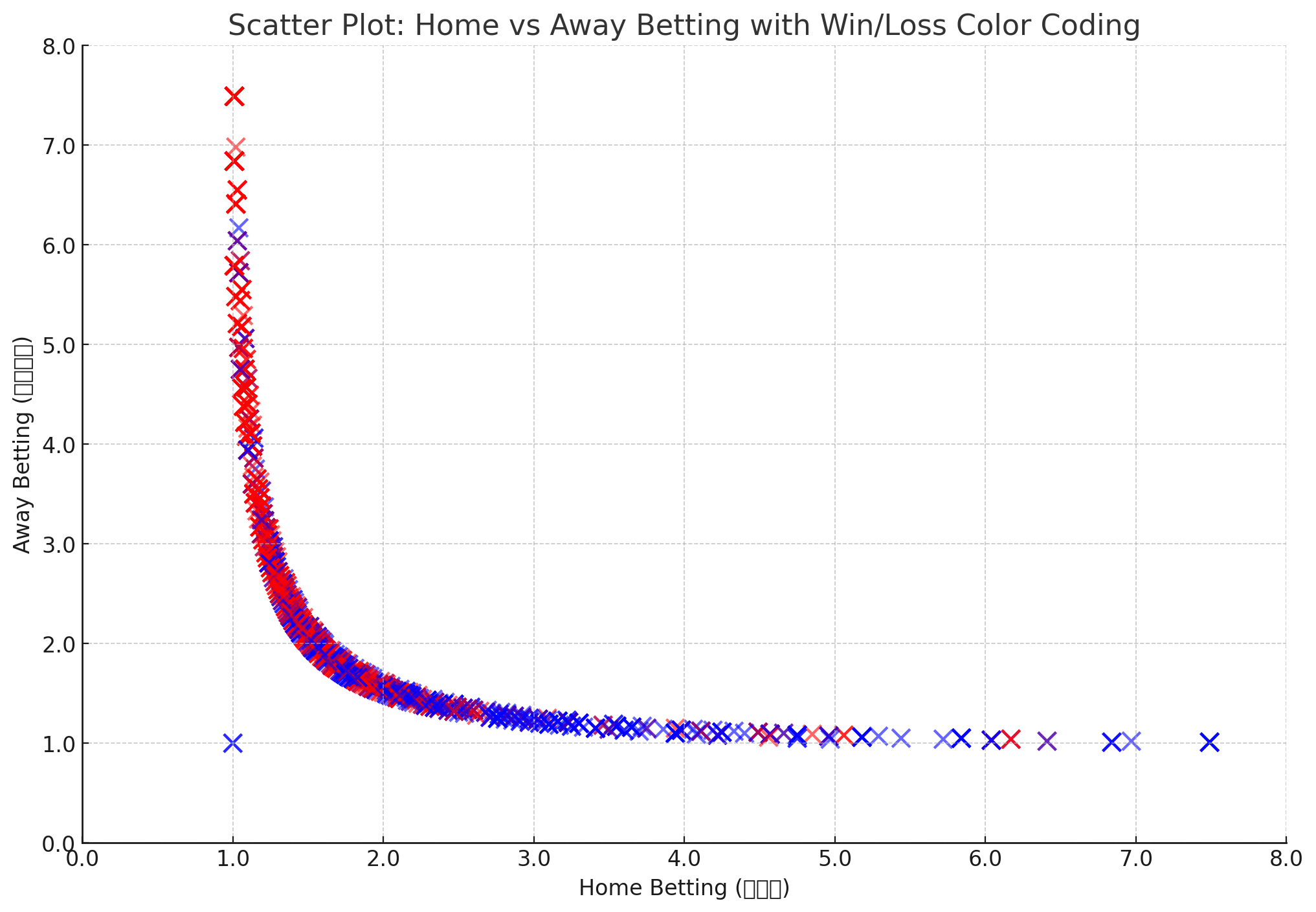 배당률에 따라 위치가 정해지고 홈팀 승리면 빨간색, 패배면 파란색이다.