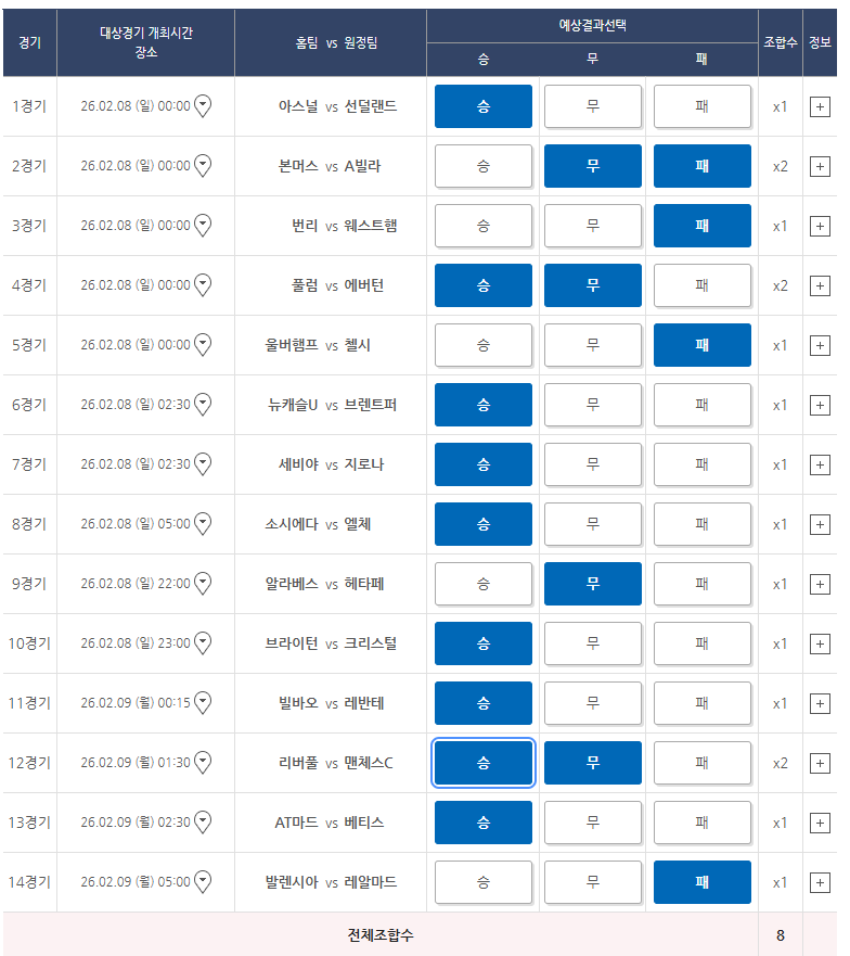 정배는 과감히 가져가되, 무승부 가능성이 높은 3경기는 복수선택으로 방어하는 전략이 적중 확률을 높인다.