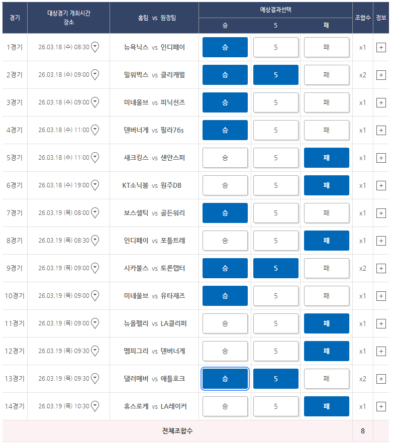 | 농구토토 승5패 18회차 분석 (NBA + KBL) 14경기 예측 및 복수선택 추천 (0) | 2026.03.09 |