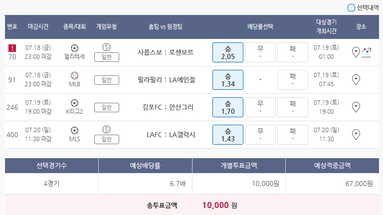 | 400 | LAFC vs LA갤럭시 | LAFC 승 | 1.43 |