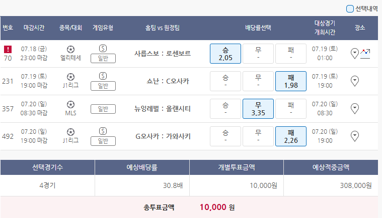 | 231 | 쇼난 vs C오사카 | C오사카 승 | 1.98 |