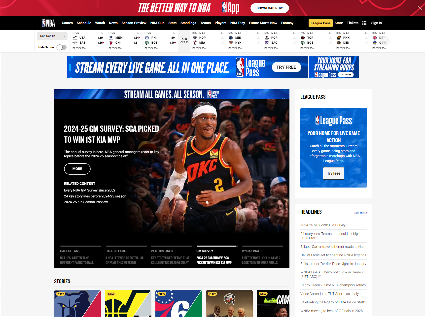 지난 글에서 분석했던 것처럼 경기 배당률은 경기결과와 상당히 관계가 있는데 도박만이 목적이 아니라면 경기를 보면서 배팅도 같이 하는게 재미가 배가 된다.지난 글은 링크 참고(https://simind.tistory.com/1) 이번엔 필자도 리그패스를 구매할겸 NBA 경기를 볼 수 있는 리그패스의 구매법을 알아보자.일단 NBA 홈페이지(https://www.nba.com/) 에 들어가면 오른쪽 위에 리그패스라고 노란색 아이콘이 아주 잘보인다. 이놈들도 팔아먹어야 하기때문에 너무 잘보인다. 로그인 보다 더 잘보이는듯 저 노란색 아이콘을 클릭해서 들어가면 리그패스를 구매하는 화면이 나오게 된다. 첫페이지는 다 영어인데 여기서는 친절하게 한글로 나온다. 이 페이지만 한글로 나오는게 약간 열받긴함. 일단 리그..